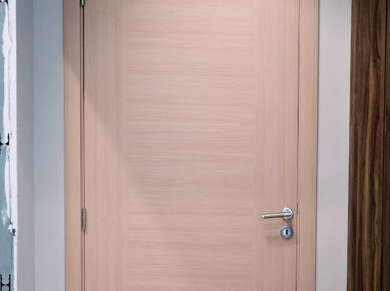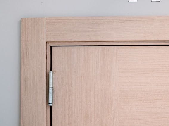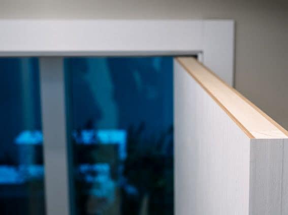 Hoja: construidas con bastidor perimetral de mandera pino clear y panel interior «nido de abejas» de material celulósico. Emplacadas en MDF de 5,5mm. Acabado foliado en pvc.