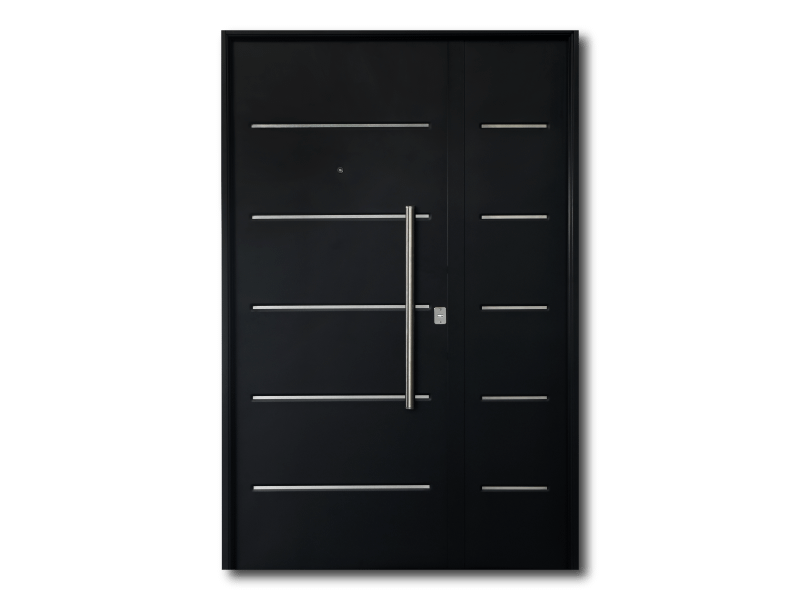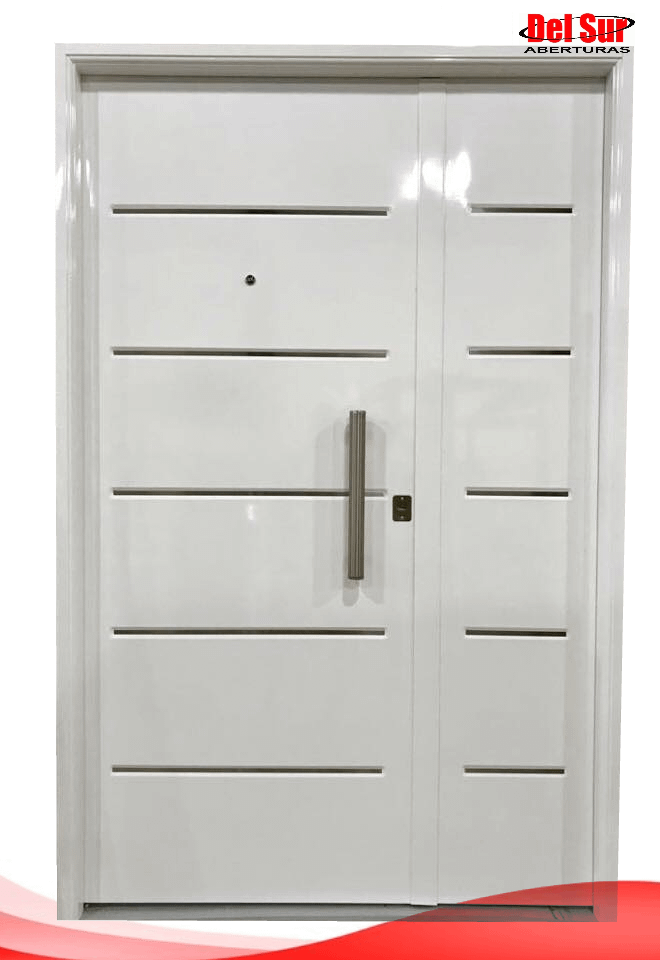 Hoja doble chapa, inyectada con poliuretano expandido para lograr que la puerta sea acustica y actue termicamente